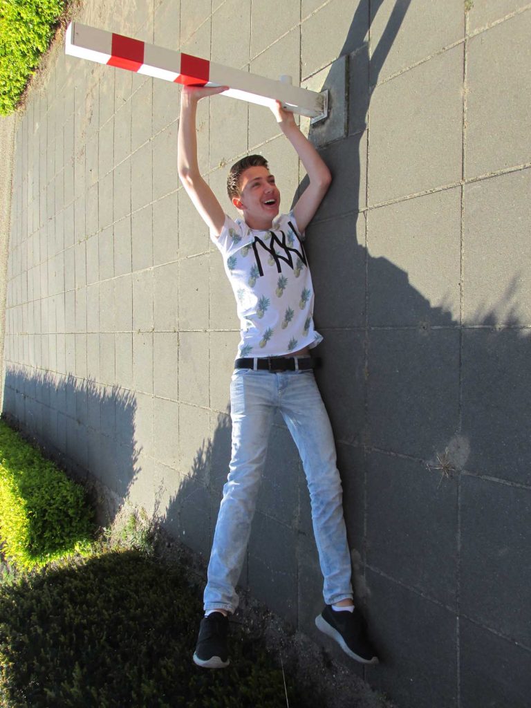 Je ensceneert de foto’s zo dat het lijkt of de personen op de foto aan stoepranden hangen of op lantarenpalen staan. Goed kijken en precies neerzetten leveren de spannendste resultaten.